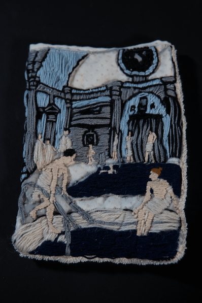 Dans ce lieu, on peut trouver divers objets à la gloire de l'eau thermale : des gants de toilette, des serviettes, des bijoux... des peignoirs, "la cruche de l'eau perdue", des outils de méditation... Tous ces objets sont décorés d’illustrations de scènes de bain, de diverses époques et cultures à travers le monde. (Je me suis inspirée de scènes de l’antiquité avec les bains publics romains par exemple)
